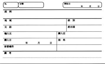 このカードの裏には罫線を引いてあって、飲んだ折り、テイスティングの感想はそこに書く様にしてあります。その後、開栓日に日付けを記入し、ティスティング記録として残すことが出来ます。つまり在庫整理とテイスティング記録が1枚で出来るようになっているのです。